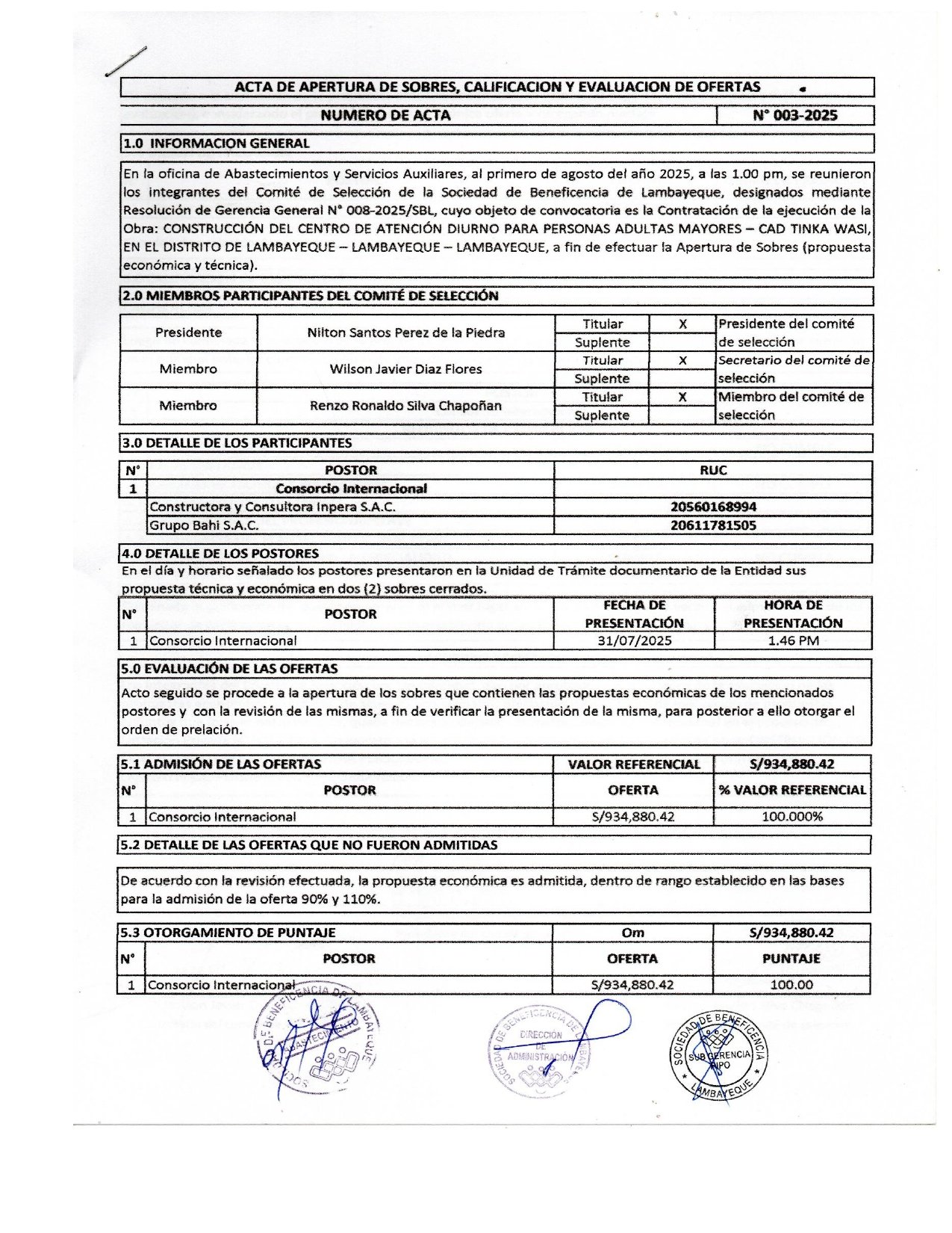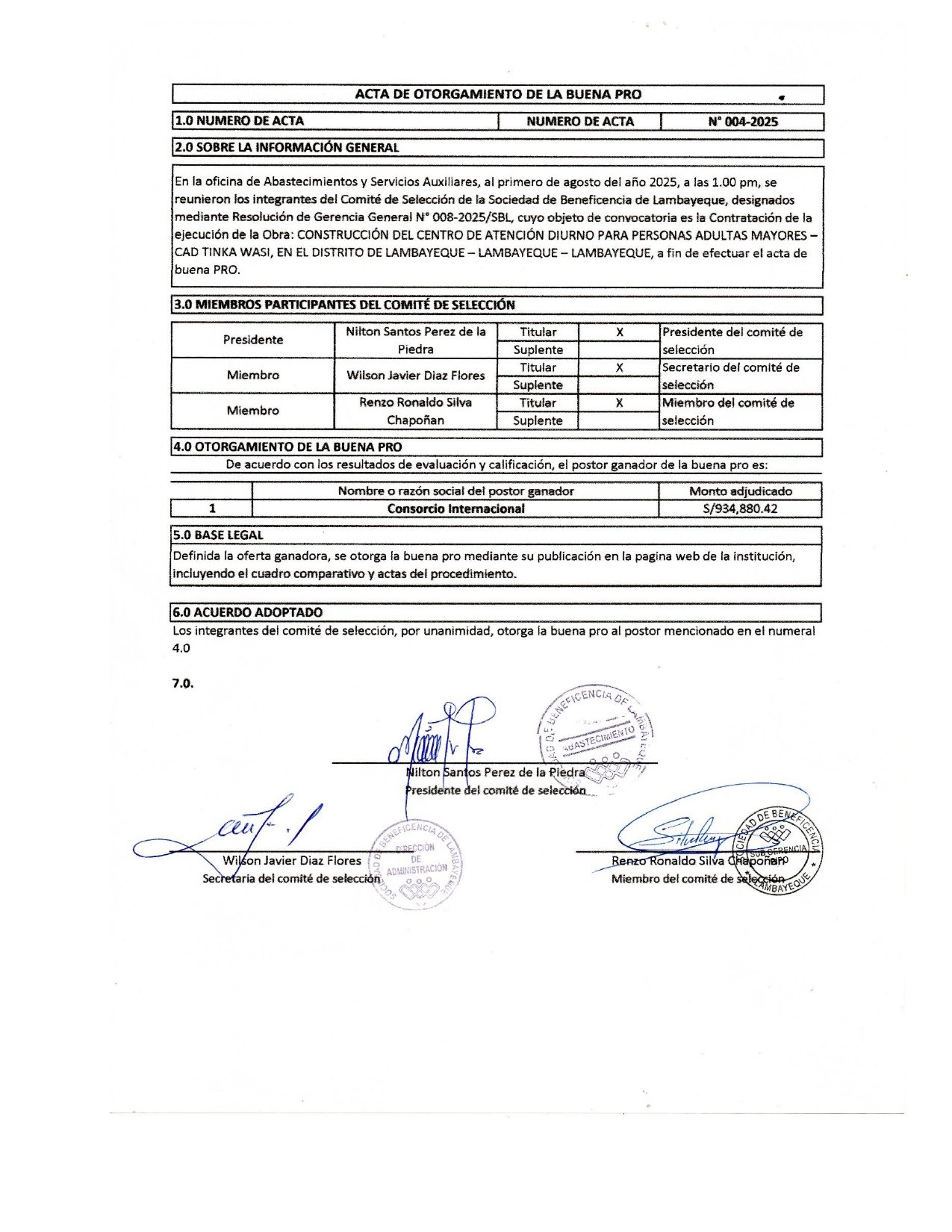 BUENA PRO: CONSTRUCCIÓN DEL CENTRO DE ATENCIÓN DIURNO PARA PERSONAS ADULTAS MAYORES – CAD TINKA WASI agosto 1, 2025 / Por BeneficenciaLambayeque / Deja un comentario